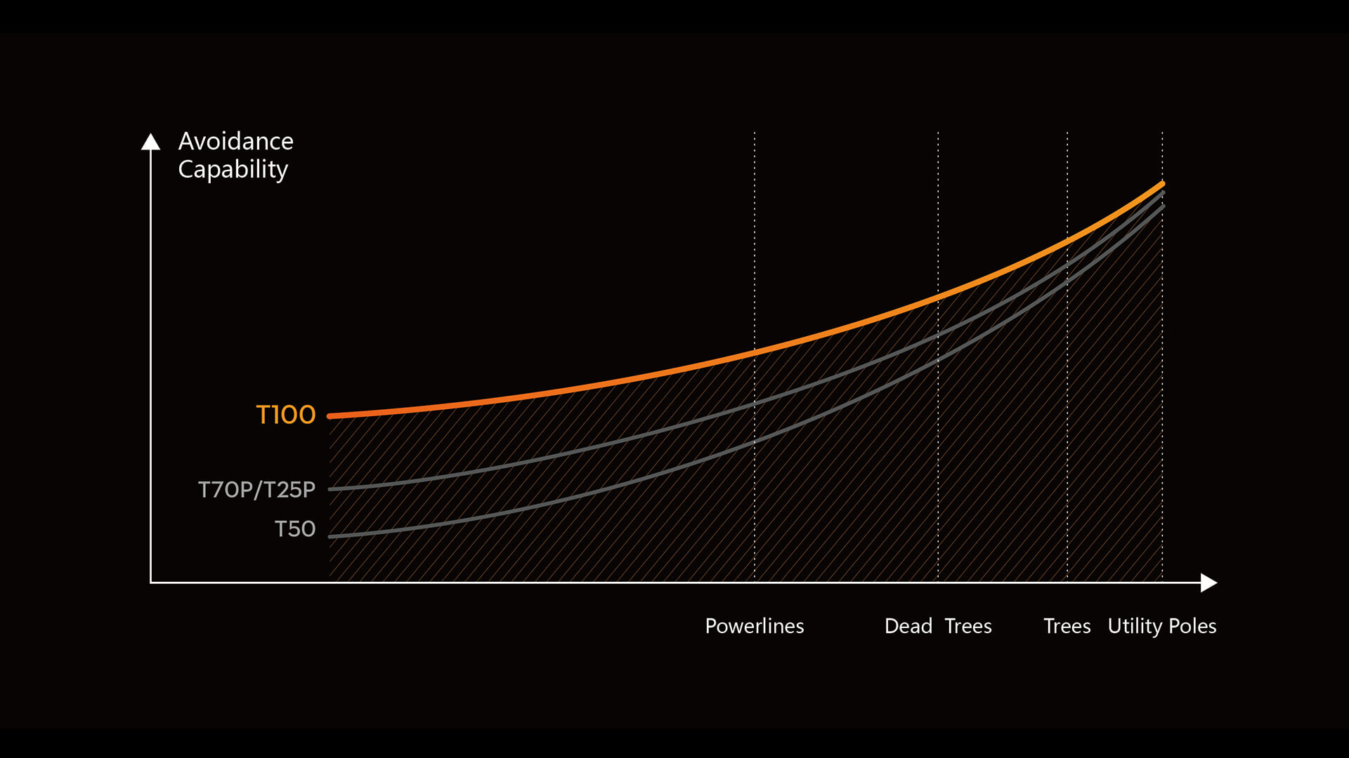 Con la fusión avanzada de múltiples sensores y algoritmos mejorados, el T100 logra una tasa de éxito más alta en evasión de diversos obstáculos. Su precisión en la detección de obstáculos más pequeños está significativamente mejorada, asegurando operaciones más seguras y confiables[2].