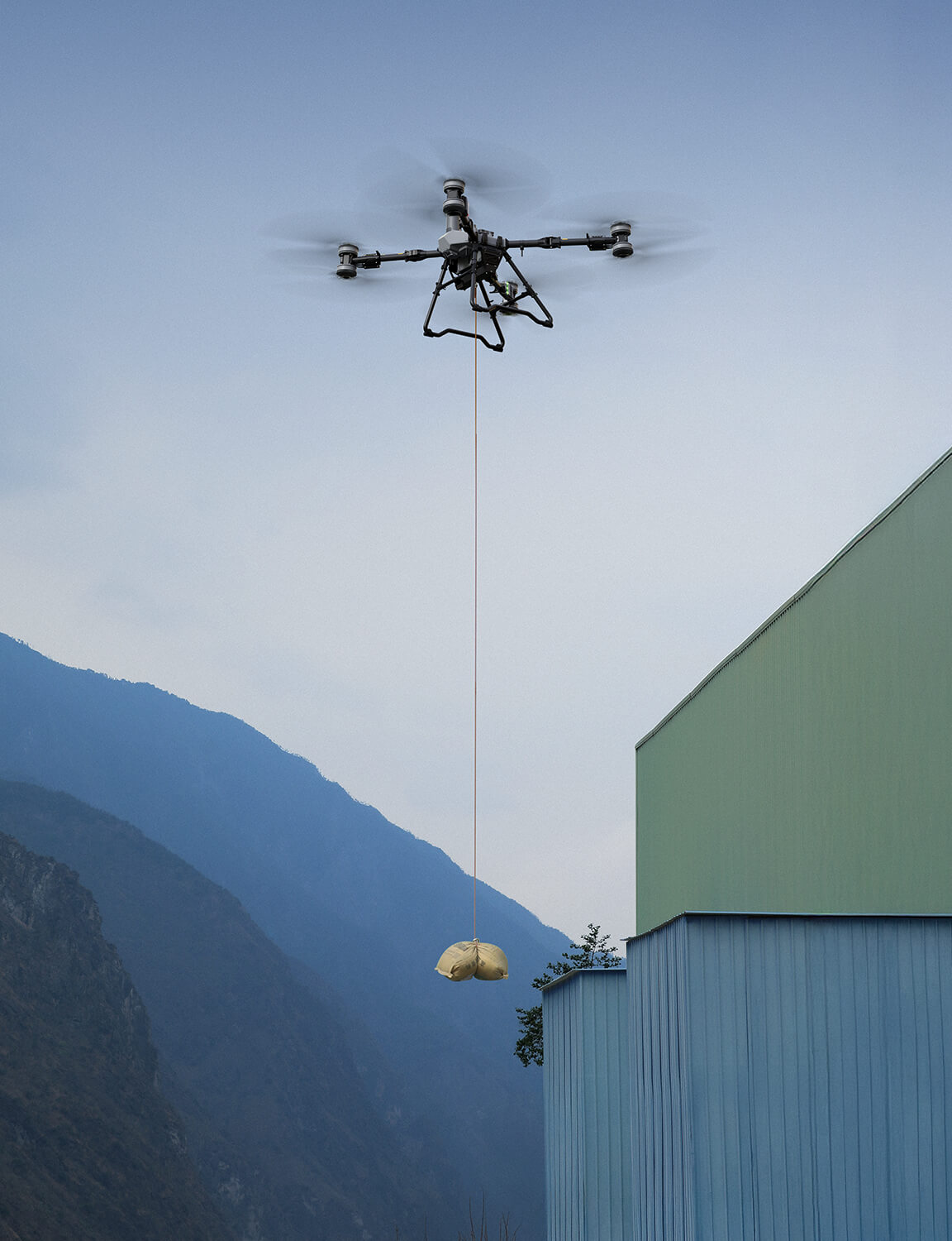 [28] Un peso de 80 kg se mide debajo del sensor de fuerza triaxial (incluyendo el peso de la eslinga y el gancho). Los datos fueron medidos a nivel del mar. La aplicación DJI Agras recomendará el peso de la carga según el estado actual y el entorno de la aeronave. Al añadir materiales, el peso máximo no debe exceder el valor recomendado, de lo contrario, la seguridad del vuelo podría verse comprometida. Los usuarios deben cumplir con las regulaciones locales durante la operación.